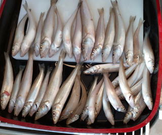 そこで皆様に写真でもと思いながら帰宅したが、着替えている間になんと キスたちは背骨を抜かれ フライの材料に姿を変えていたのです。